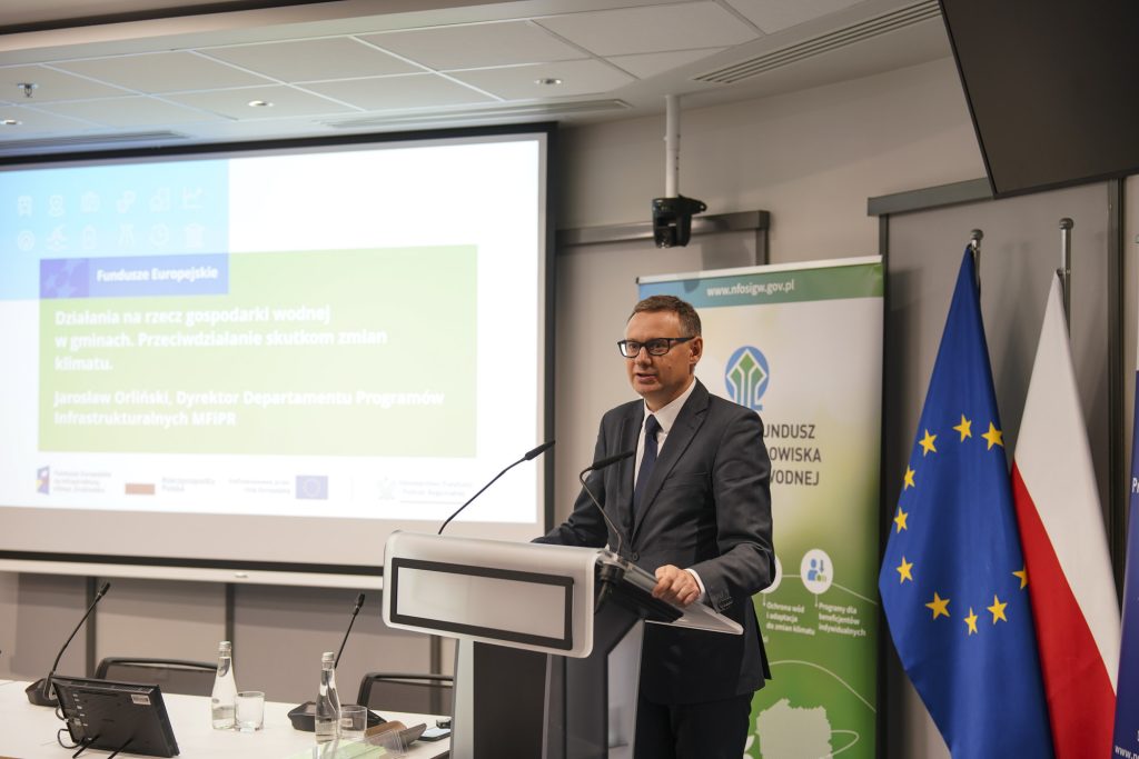 Jarosław Orliński, Dyrektor Departamentu Programów Infrastrukturalnych w MFiPR mówił jak ważne są dobre praktyki, których mamy coraz więcej. Dzięki dofinansowaniu z funduszy unijnych powstało w gminach wiele inwestycji, które wspierają zrównoważoną gospodarkę wodną.